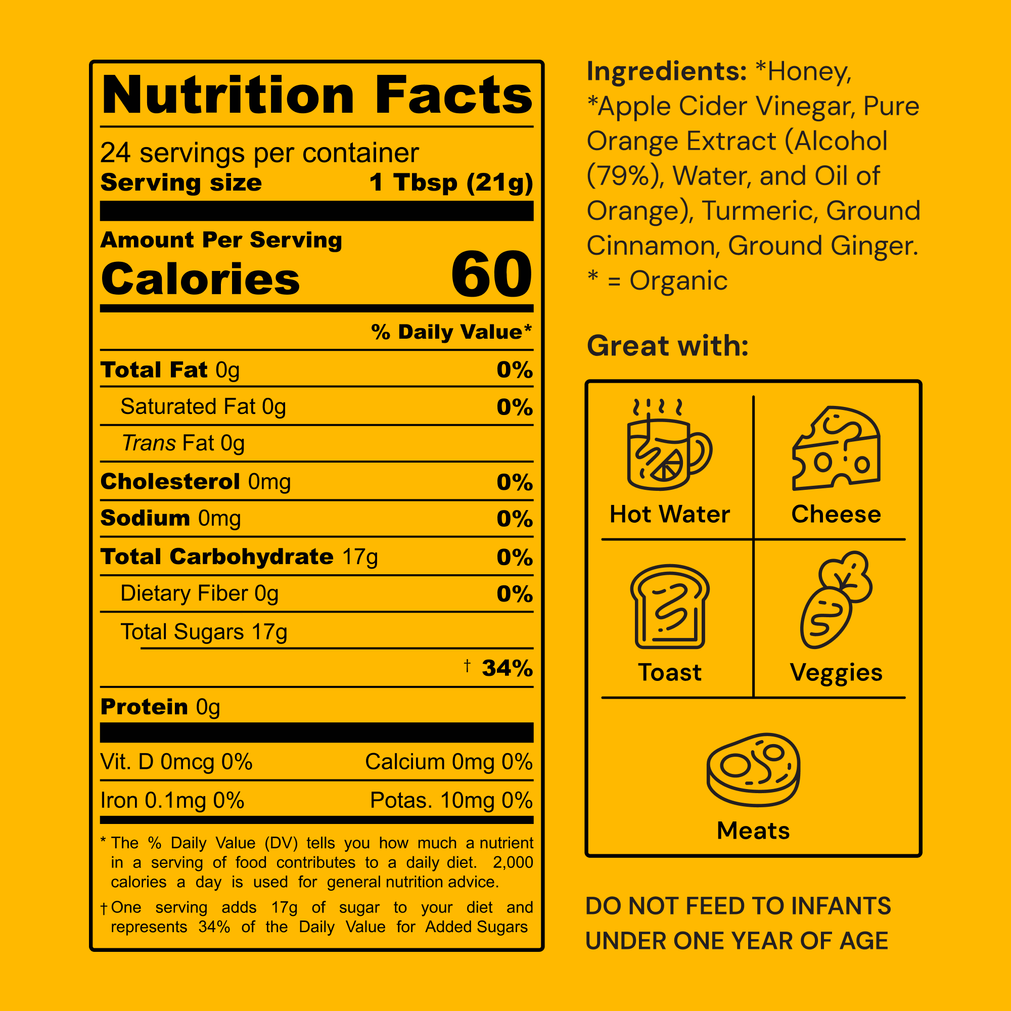 Our signature flavor. A golden harmony of turmeric, cinnamon, ginger, and citrus crafted to elevate your daily rituals. Golden Original is more than honey, it’s your invitation to explore creativity through nourishment. Stir it into warm lemon water to start your day with vitality, drizzle it over roasted vegetables for balance, or whisk it into a sauce to give your cooking a new dimension.
